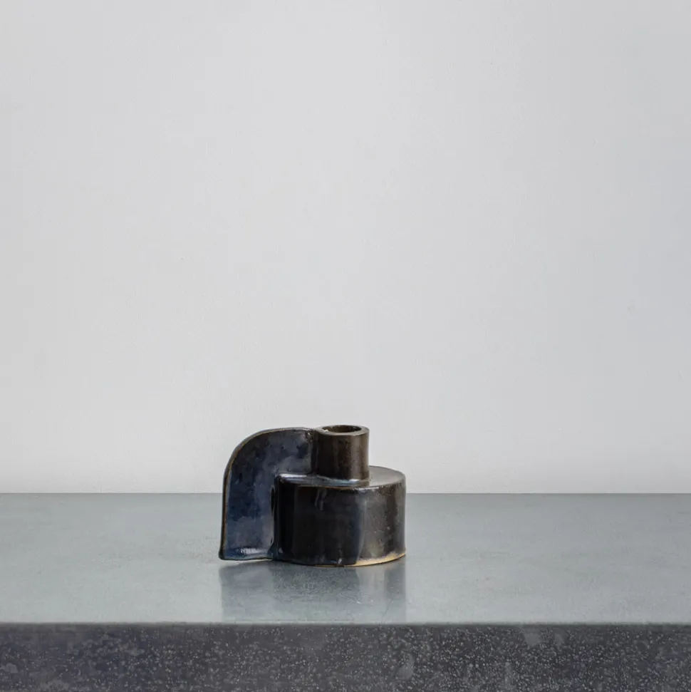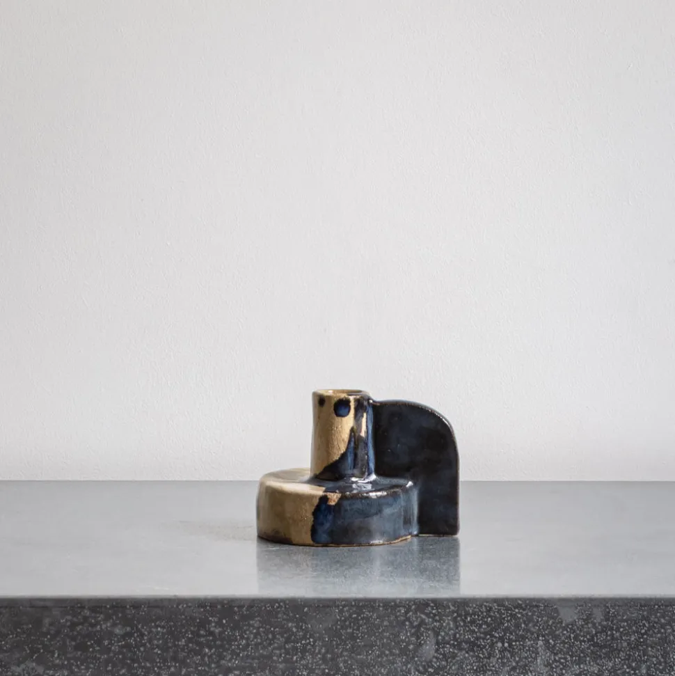 Bougeoir en grès émaillé avec socleModelé et peint à la mainChaque bougeoir est uniqueDeux dimensions :SM