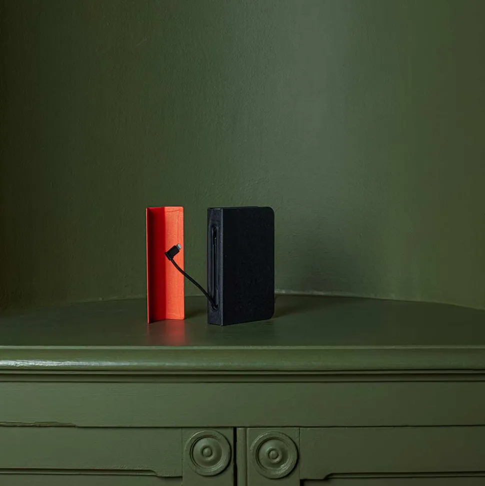 La Mini Lumio a été pensée pour une grande mobilité, c’est pourquoi elle propose même une batterie pour recharger vos appareils mobiles. Ses ports USB sont dissimulés dans une tranche amovible