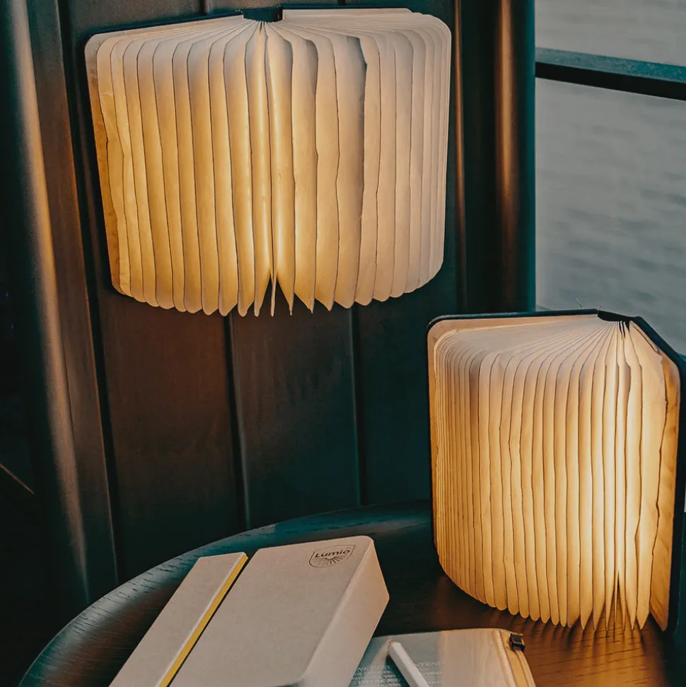 Lorsqu’elle est fermée, la Mini Lumio prend des airs de petit carnet mais une fois ouverte elle se transforme en une lampe sculpturale