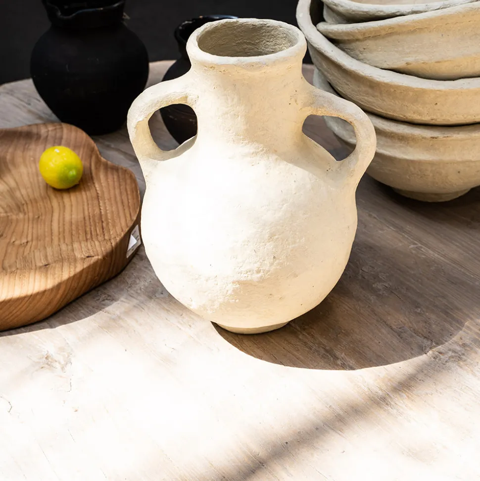 Vase en papier mâché à deux anses alliant à la fois élégance, retro et modernisme