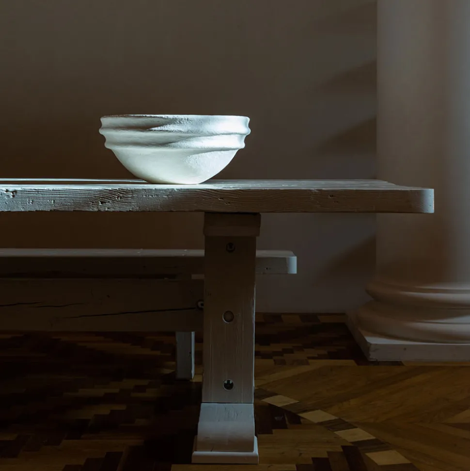 Banc en bois laqué gris réalisé par le designer néerlandais Piet Hein Eek