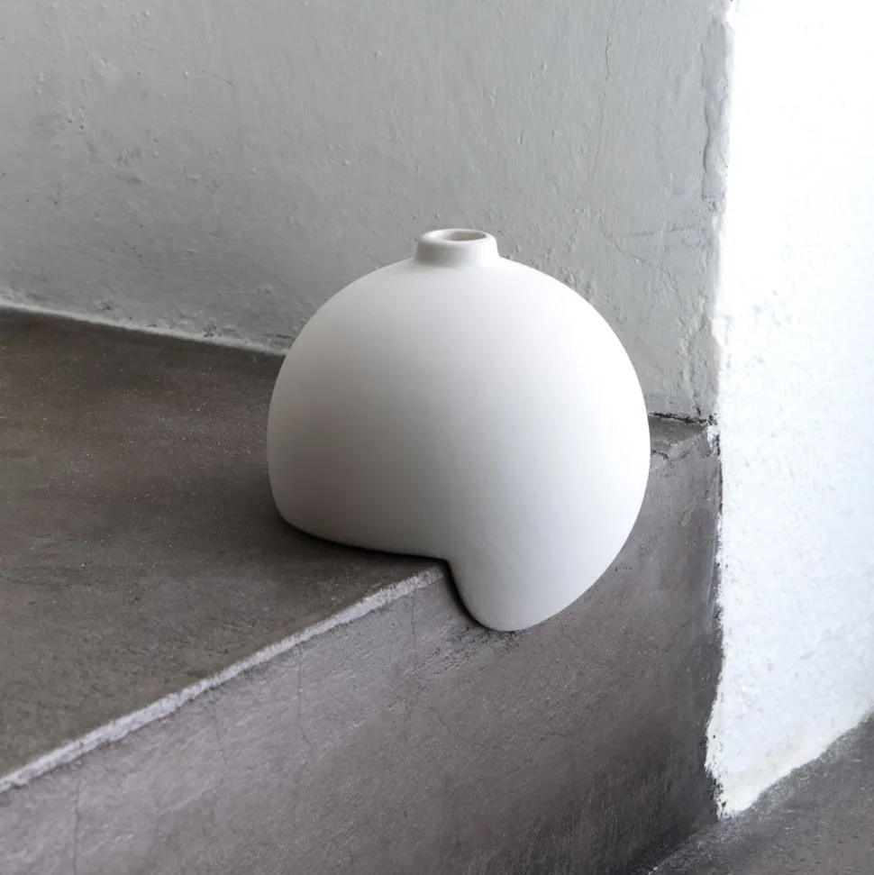 La découpe à la base lui permet de s’asseoir sur le bord d’une étagère ou d’un rebord, tout en permettant au vase de s’équilibrer sur une surface plane