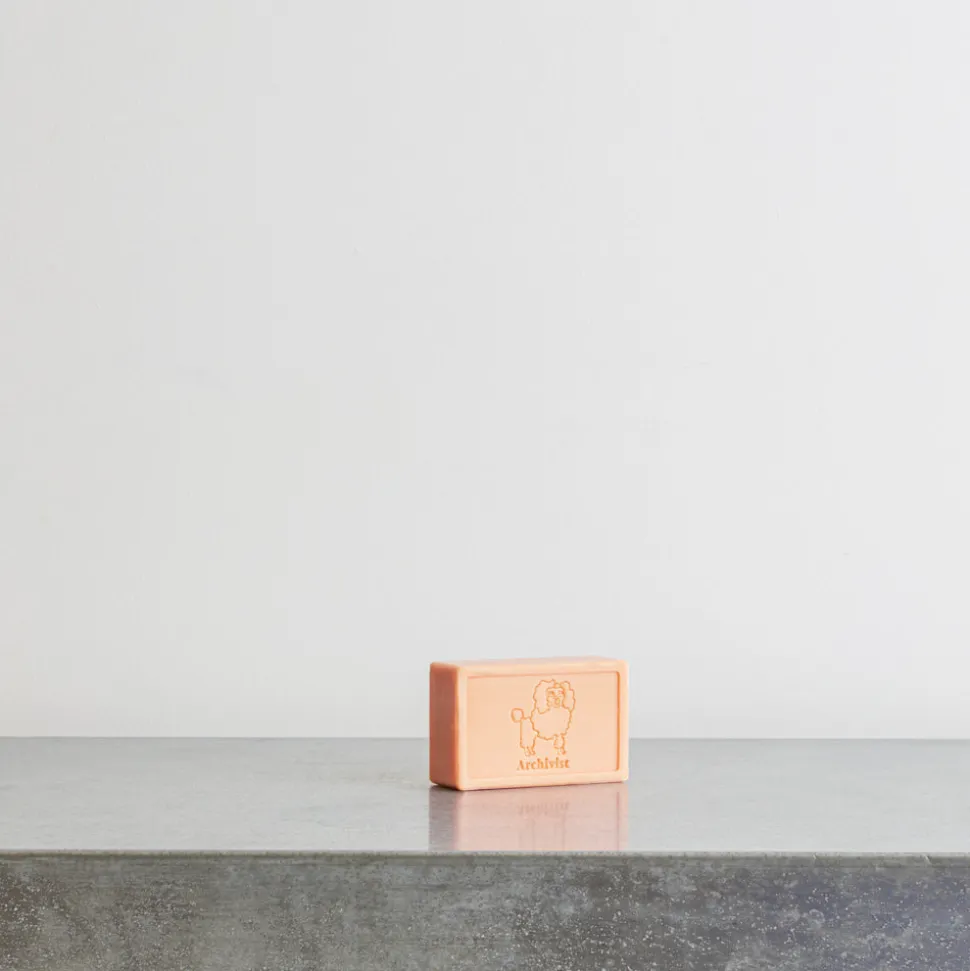 Savon parfumé à l’orange et à la cannelleEmballage en carton avec caniche sur le devantFabriqué en France, par un s…