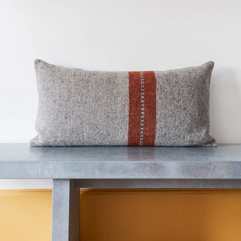 Coussin rectangulaire Montana en mélange de lin et laine pour sublimer votre canapé ou votre chambre à coucher, que vous pourrez assembler avec d’autres coussins ou foutas et accorder selon vos envies