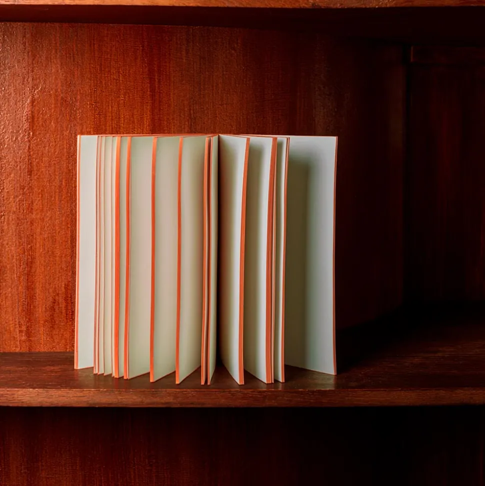 Une technique d’impression traditionnelle florentine et une reliure à l’ancienne, qui contrastent avec la tranche aux couleurs modernes, colorée à la main