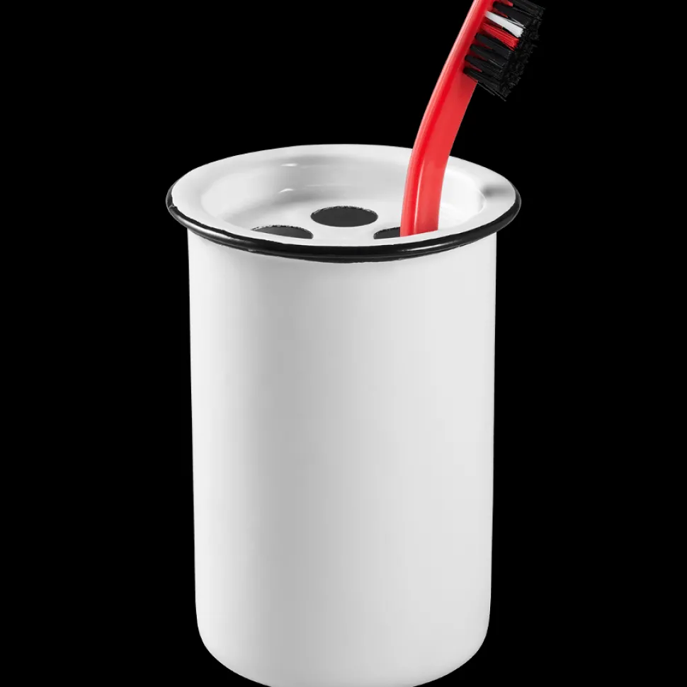 Gobelet en émail au contour noirPeut contenir jusqu’à 4 brosses à dentsDimensions: L9 x l5 cm