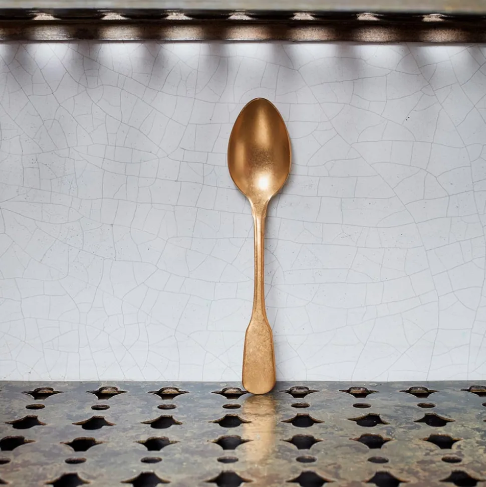 La finition vieillie de la cuillère à soupe contraste avec ses lignes contemporaines