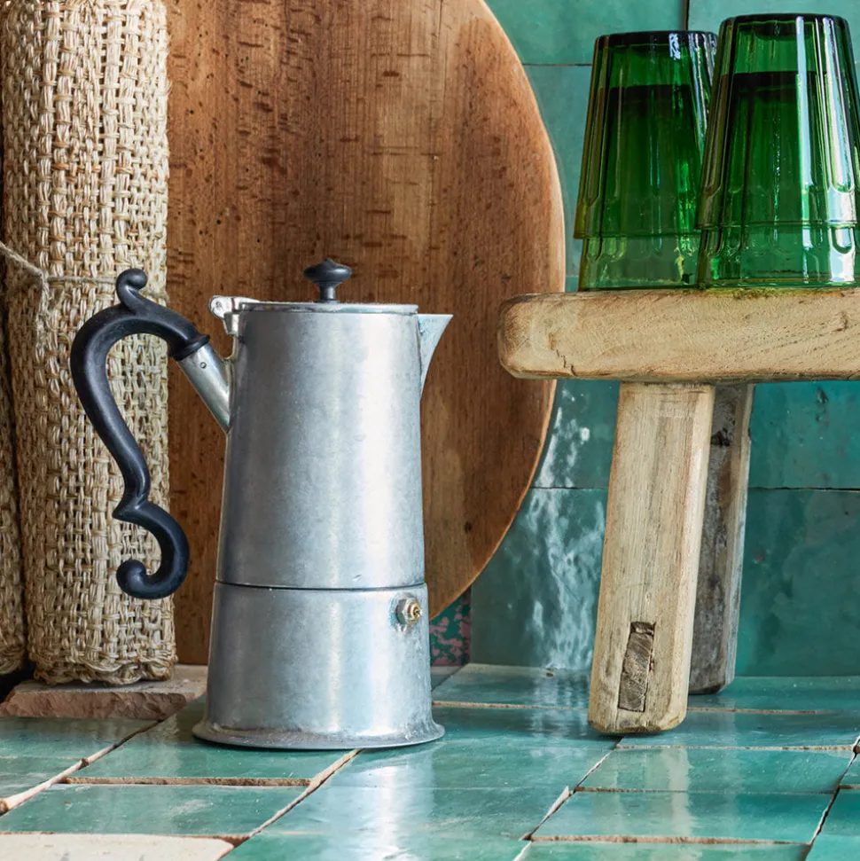 Fabriquée en aluminium aux multiples courbes, cette splendide cafetière s’inspire des services à café du 18ème siècle