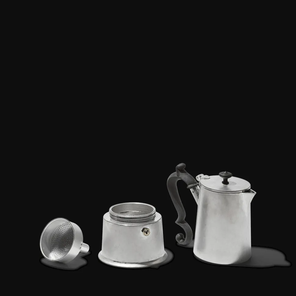 La base de cette cafetière a un double fond et est conçue pour être utilisée également sur des plaques électriques ou à gaz. Ne convient pas pour l’induction