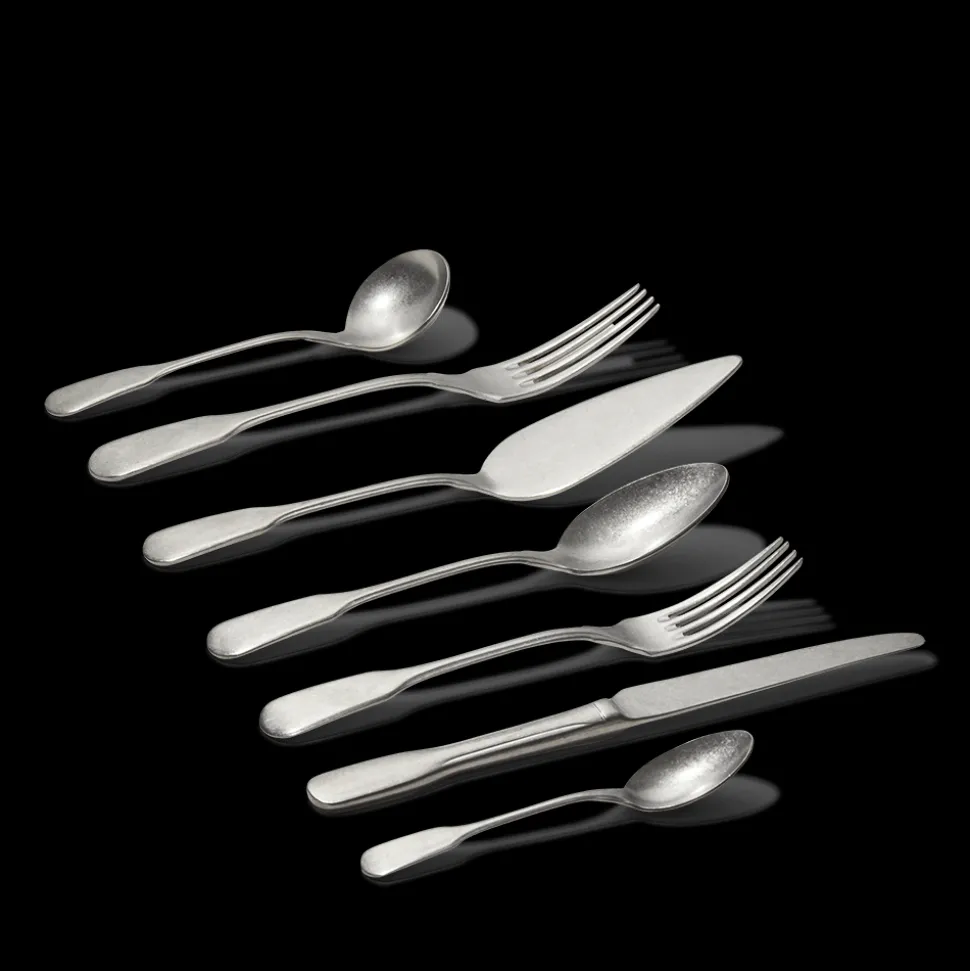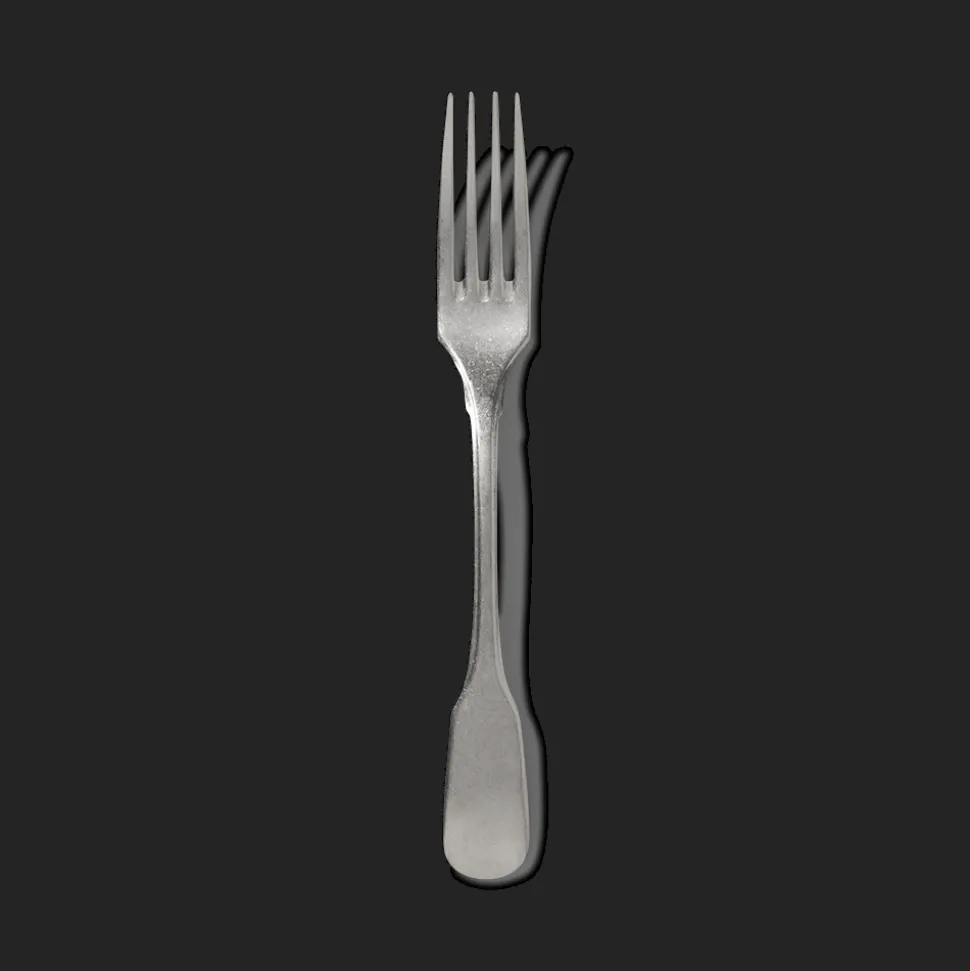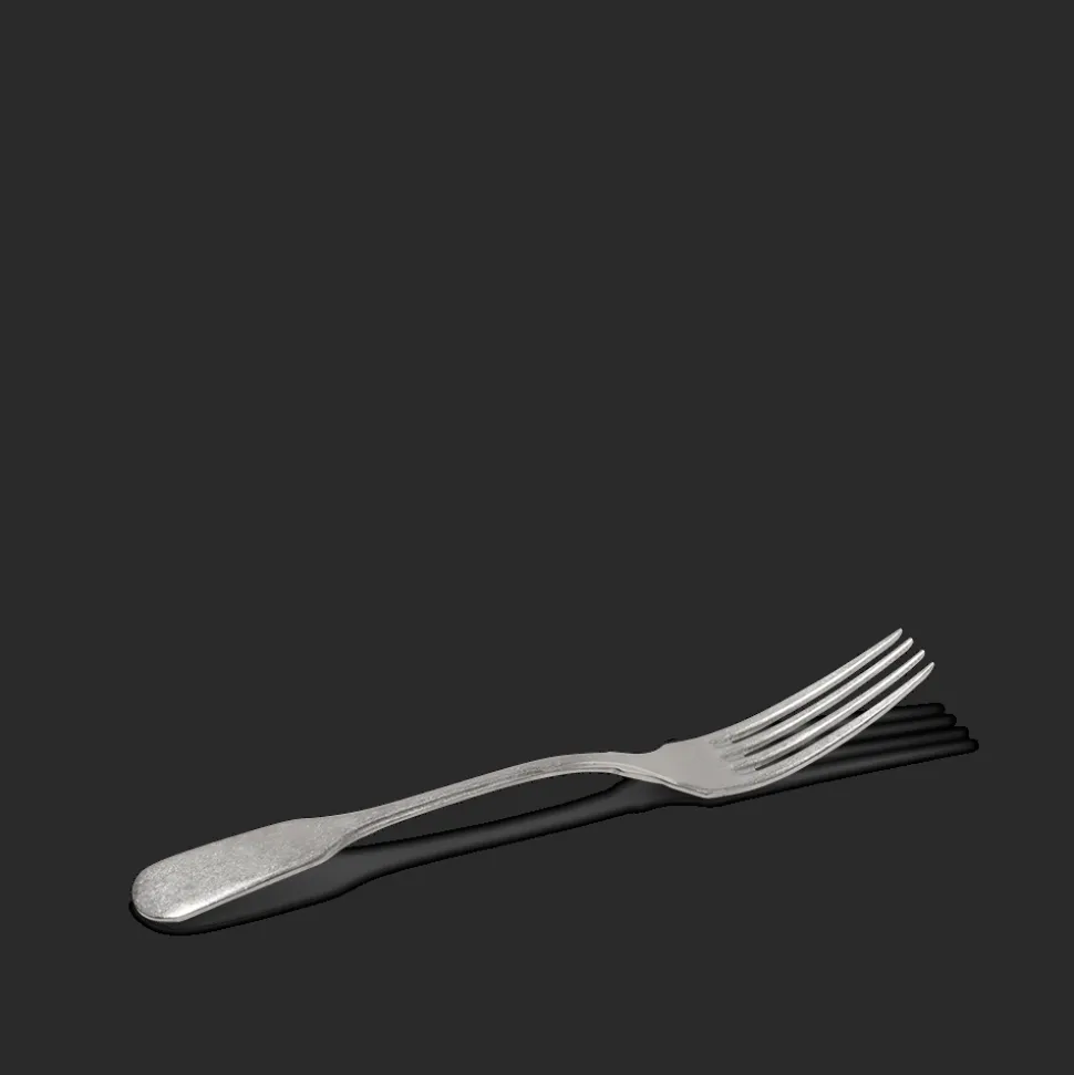 La finition vieillie de la fourchette de service contraste avec ses lignes contemporaines