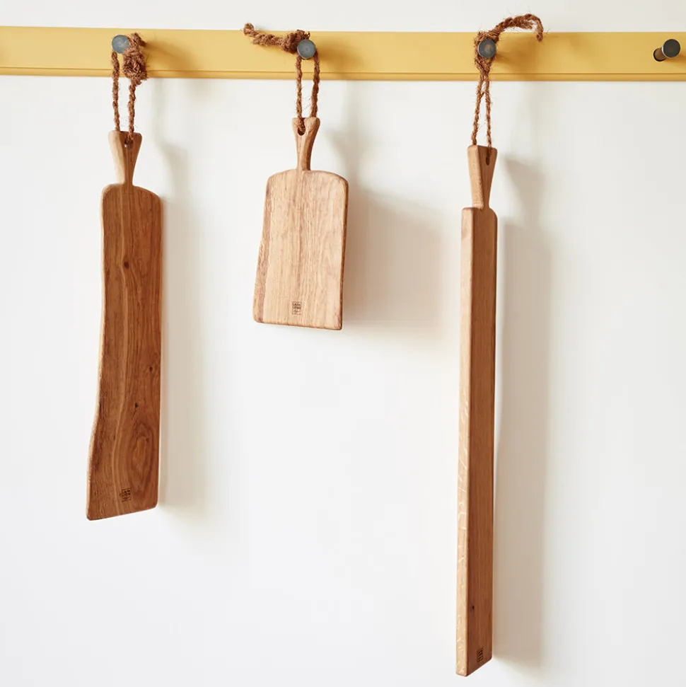Planche à découper baguette en bois de style rustiqueTrès pratique grâce au lien sur le manche ajouréSe range ou se…