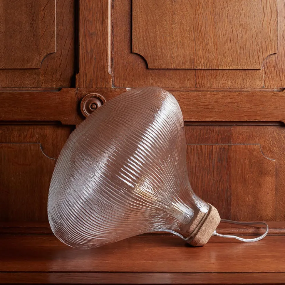 Verre soufflé, base en liège, câble silicone transparent