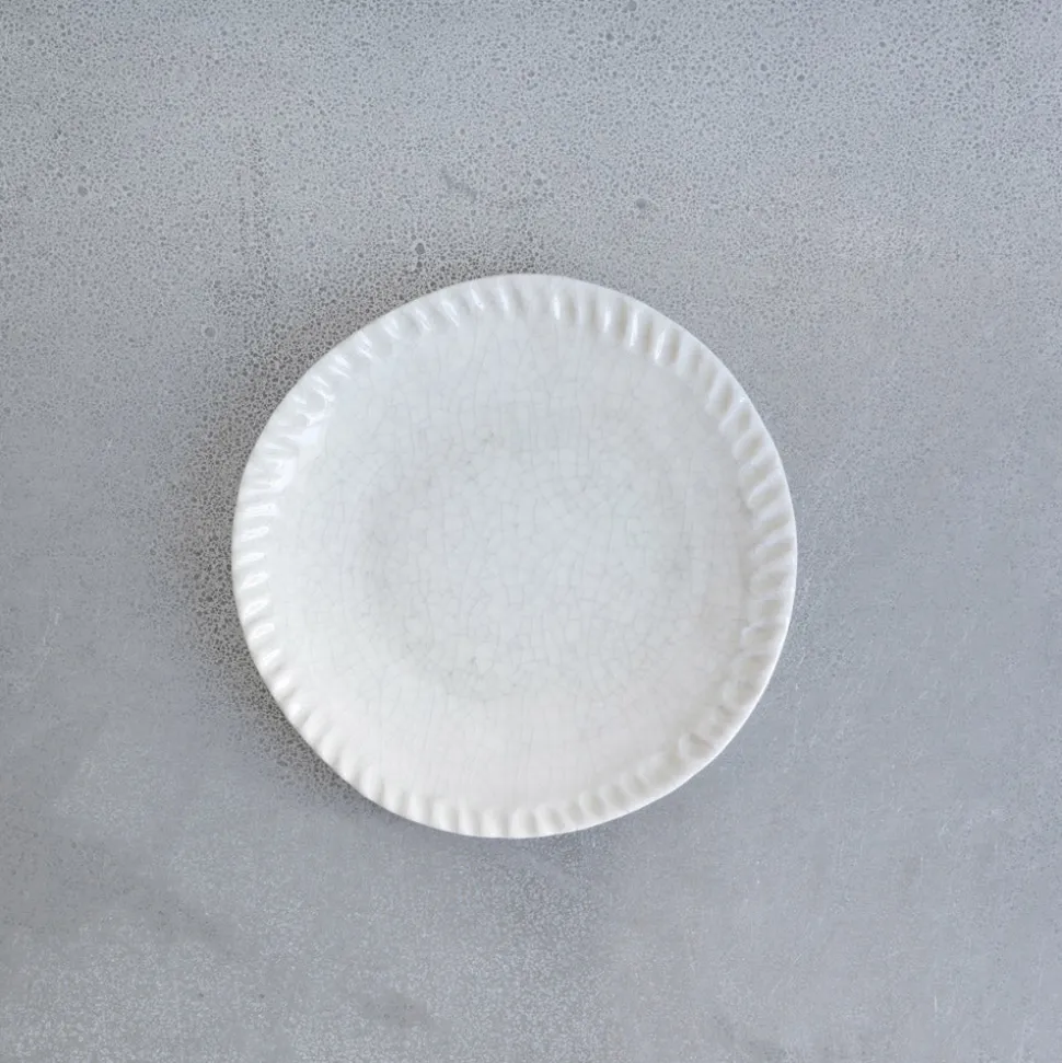 Assiette plate en grès émaillé (et brut en dessous) irrégulière de la collection Dashi imaginée par le designer Pierre Casenove