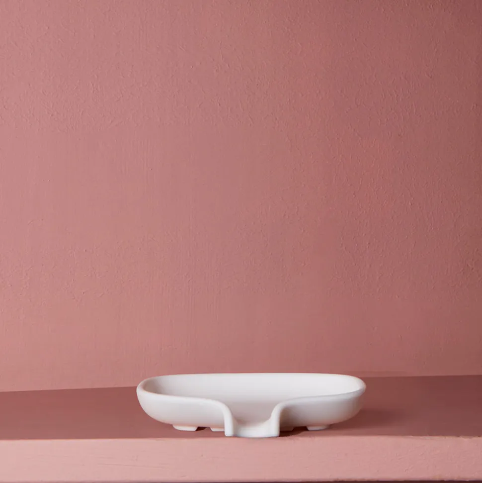 Porte-savon avec égouttoir en silicone de couleur blanche
