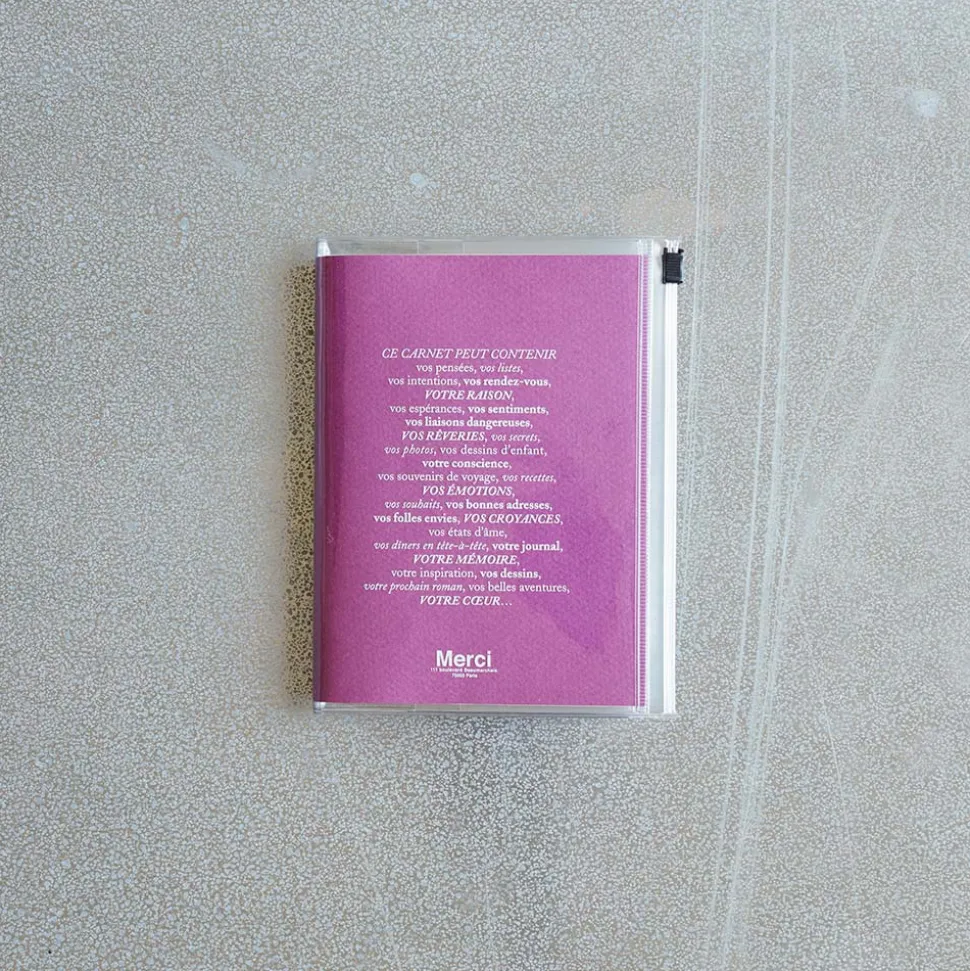 Merci a imaginé un carnet à son image : pratique, transportable partout, qui va droit à l’essentiel