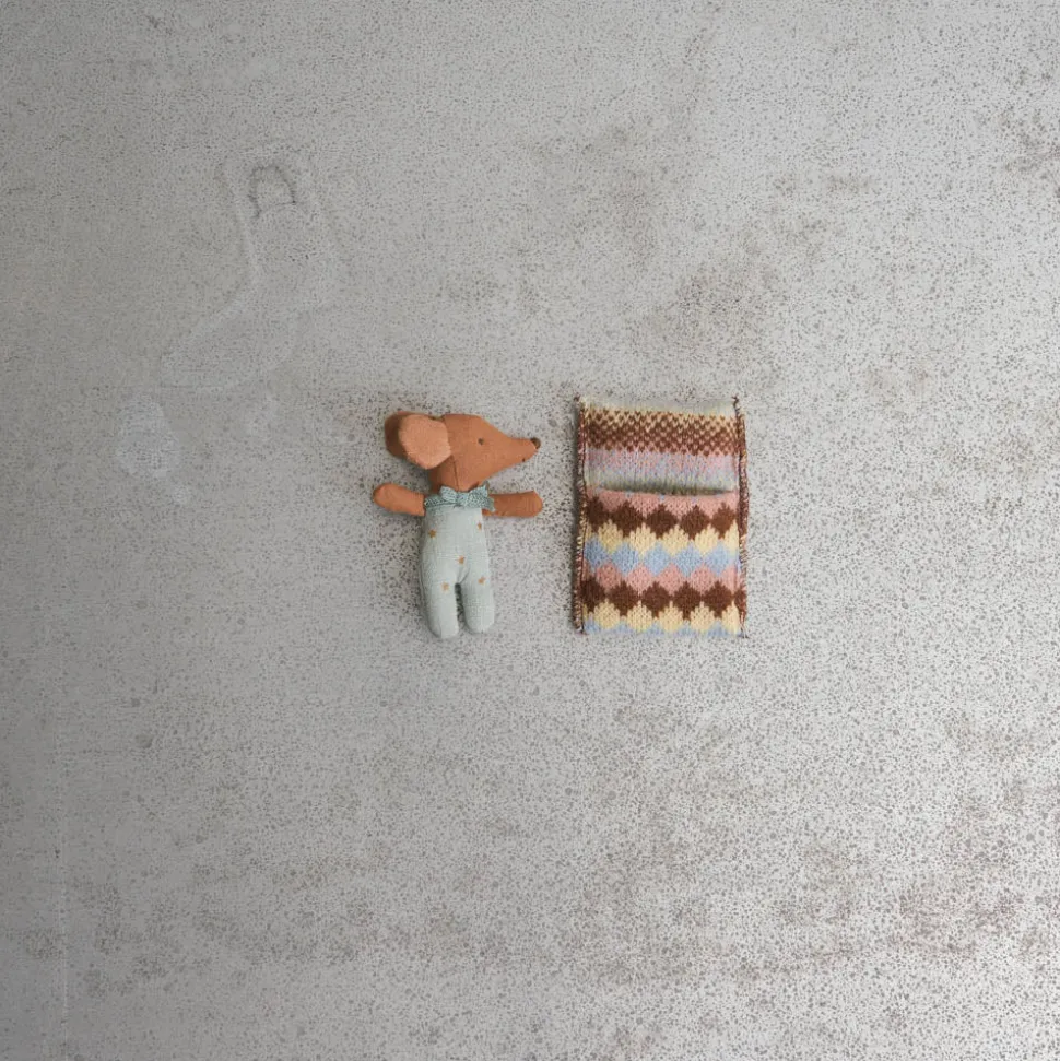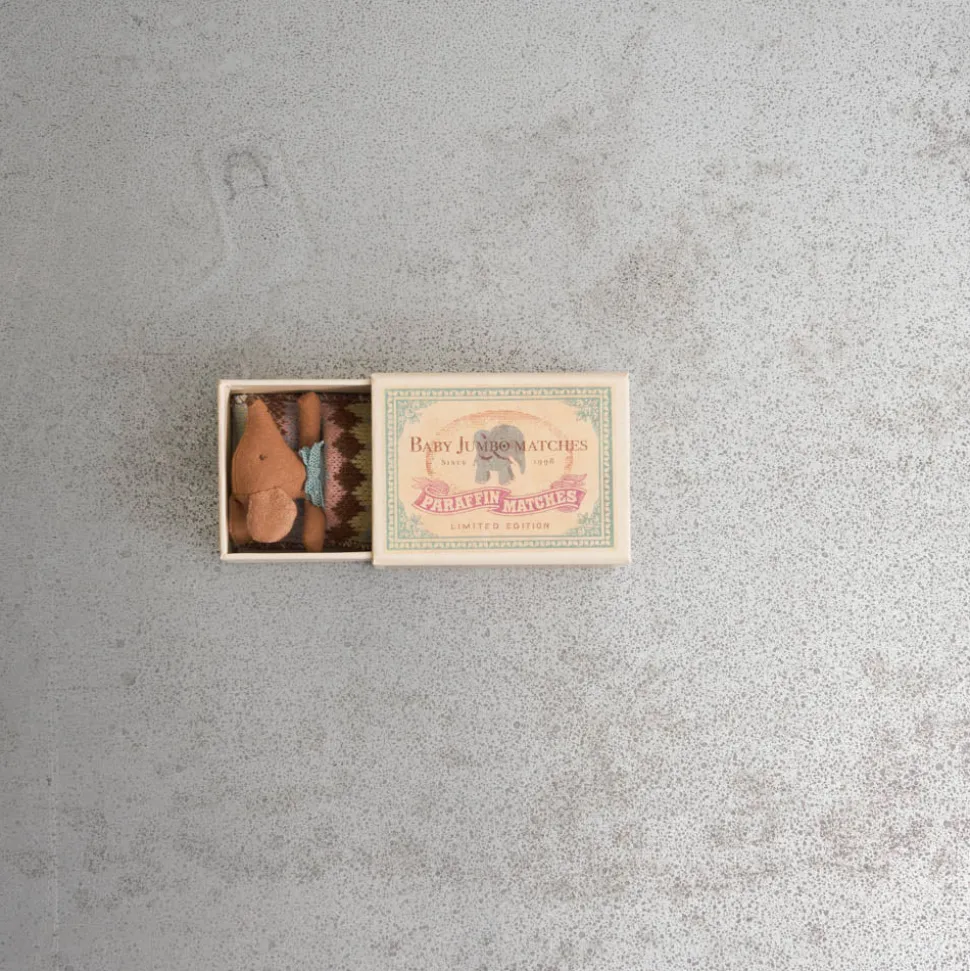 Petite souris en coton prête à dormir dans sa petite boîte de rangement allumette, à câliner sans retenue