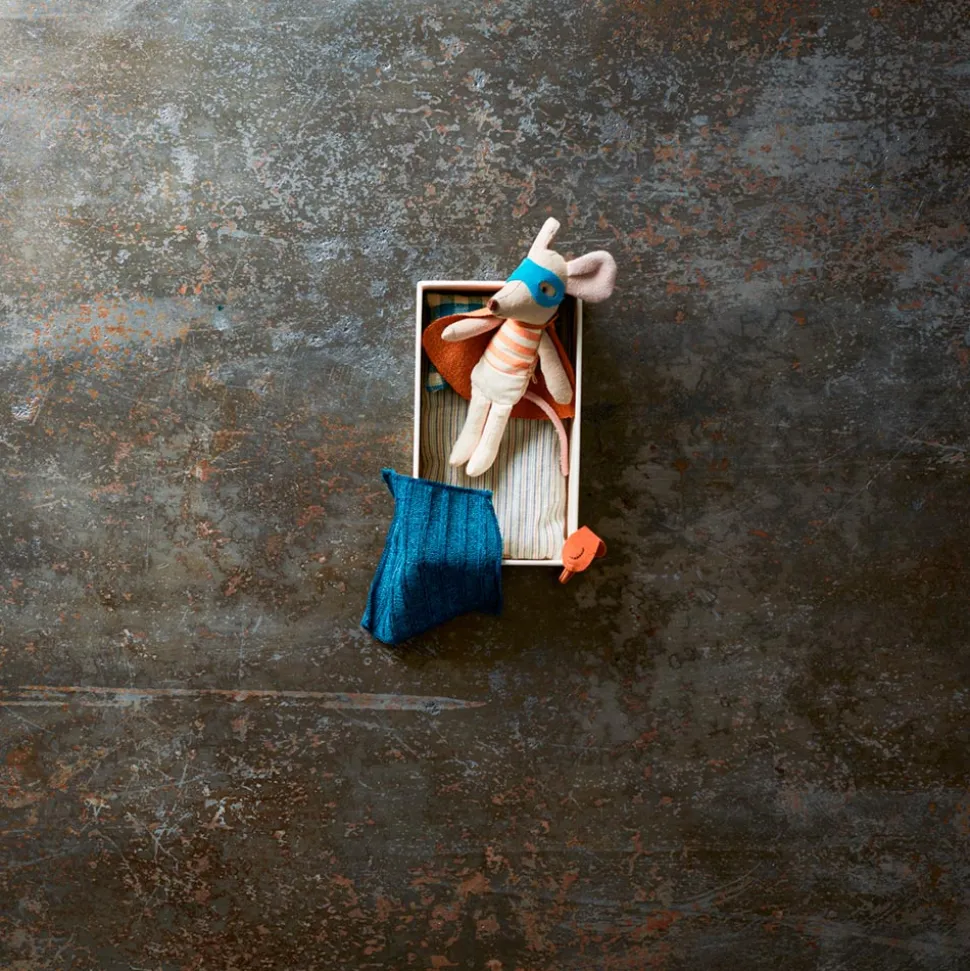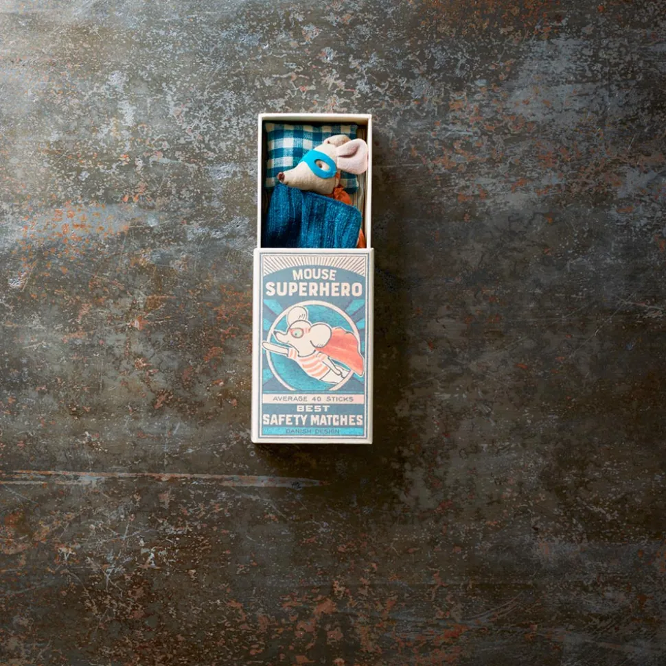 Petite souris super-héros portant une cape, tout doux et douillet, à câliner sans retenue