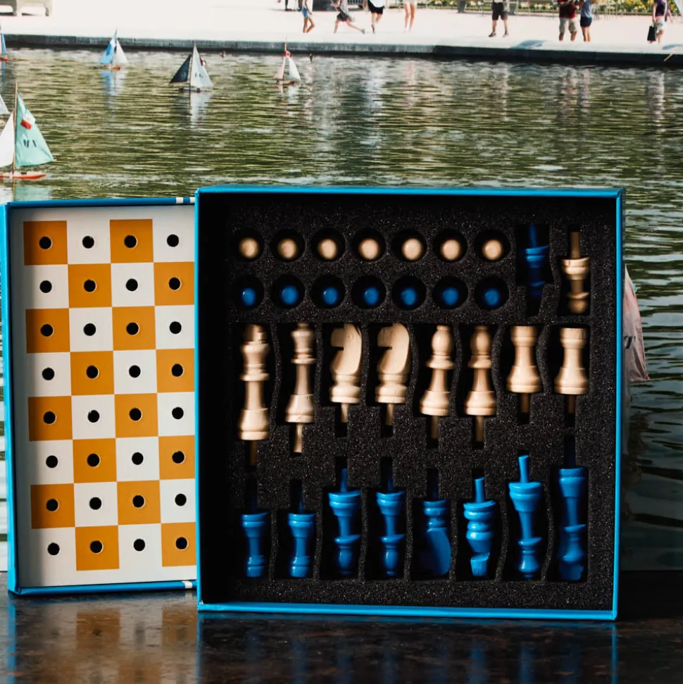 Tout le matériel de jeu, y compris l’échiquier, se range dans une boîte élégante et pratique