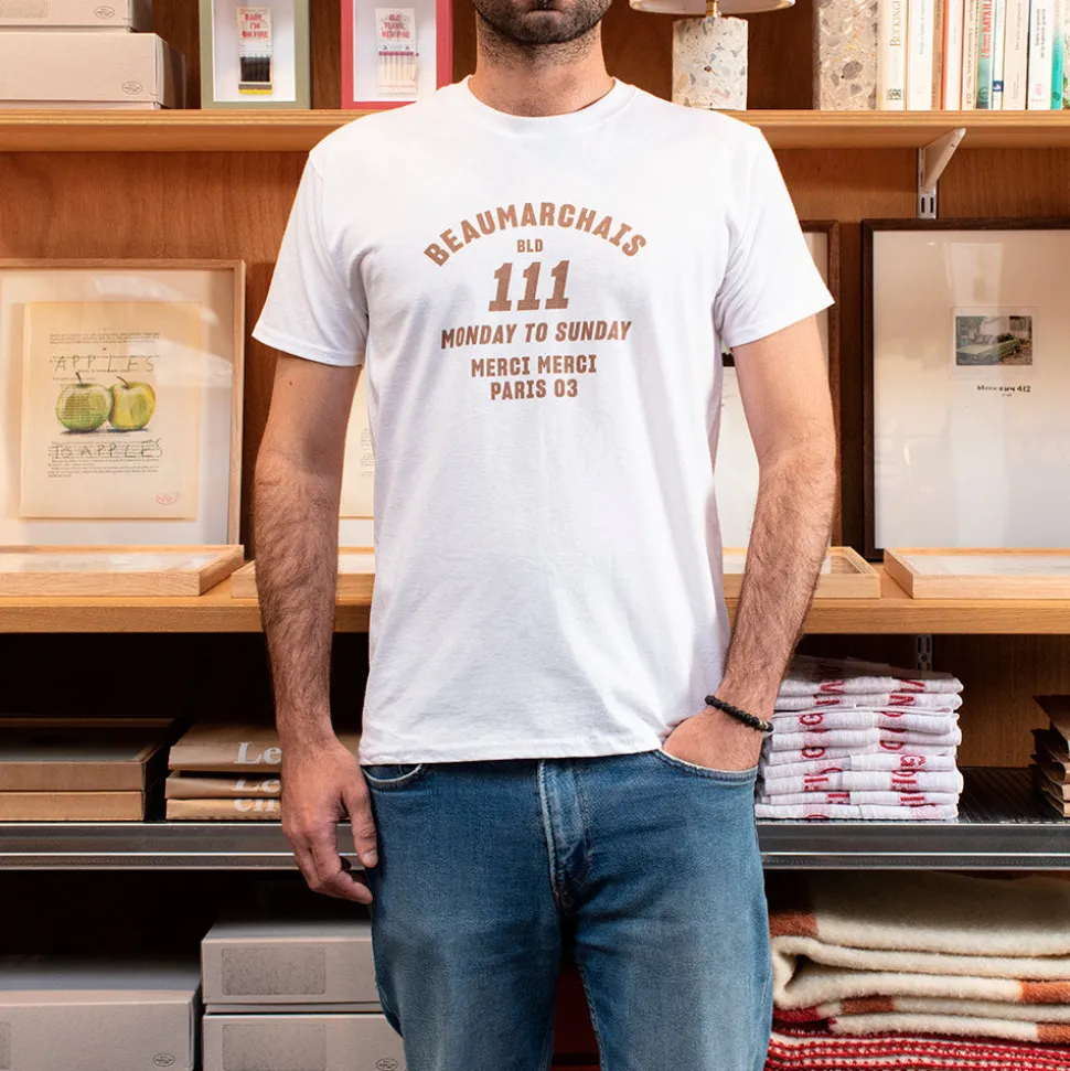 T-shirt Beaumarchais avec l’adresse de la boutique. Effet rétro assuré