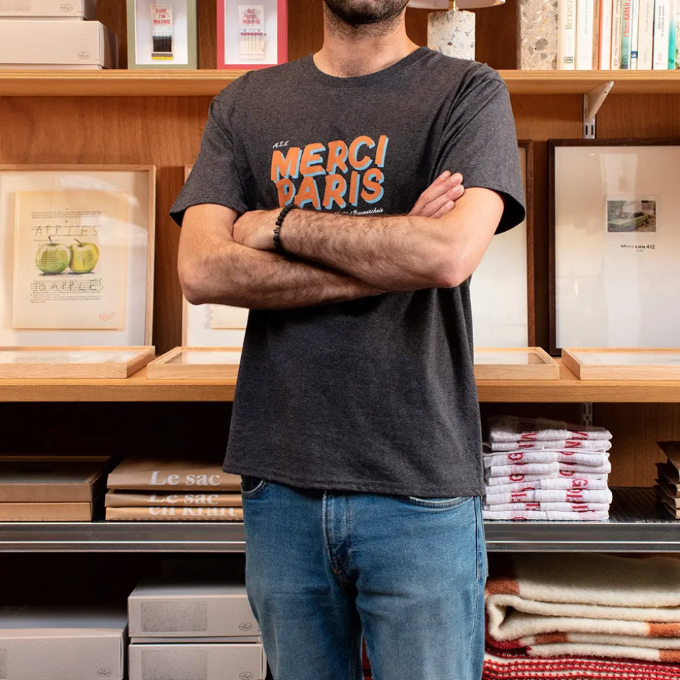 Logo Merci Merci imprimé sur le devant avec l’adresse de la boutique