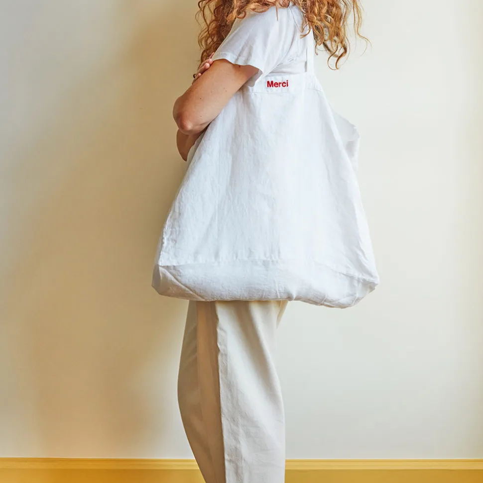 Femme 200 LINTEX Cabas Merci|Cabas-Cabas en lin lavé Merci – Blanc Optique