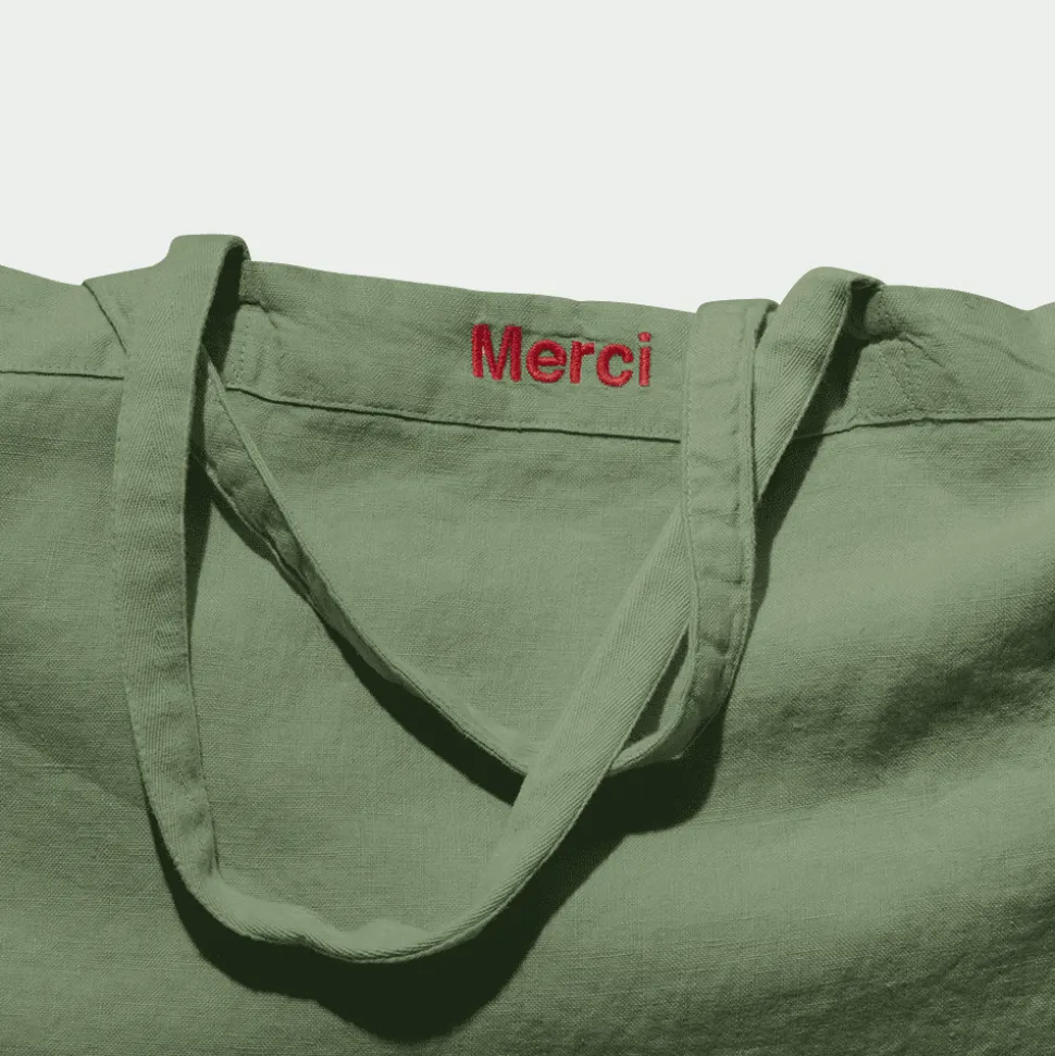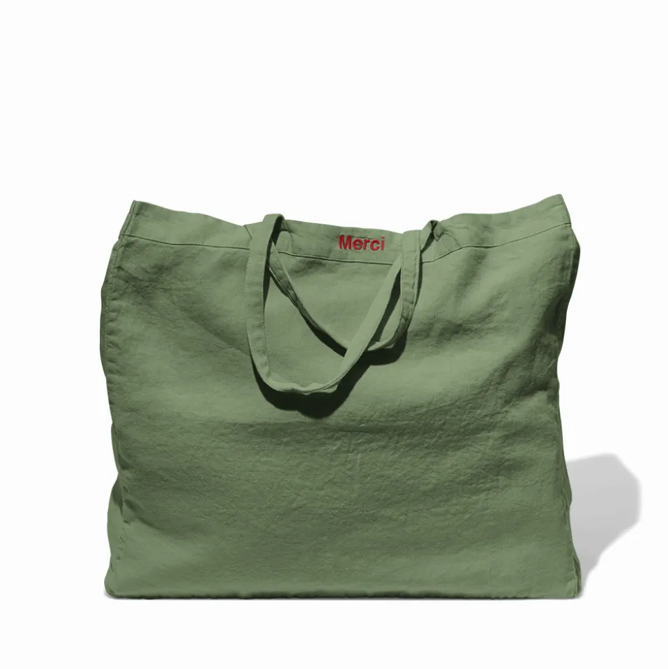 Femme 200 LINTEX Cabas Merci|Cabas-Cabas en lin lavé Merci – Vert d'Anduze