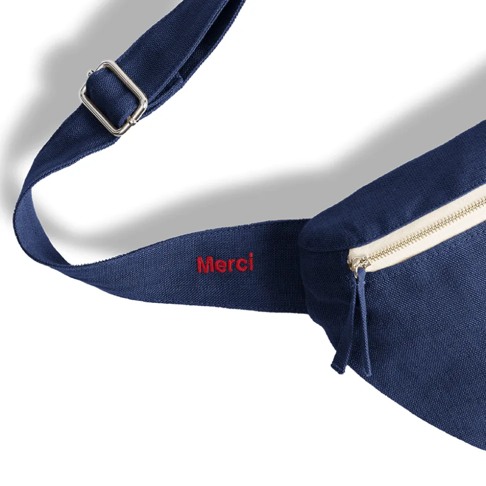 La Banane To Go, en 100% lin certifié OEKO-TEX est dotée d’une forme arrondie, d’une grande poche principale et d’une poche arrière zippée pour ranger vos essentiels. Elle est ornée d’une broderie « Merci » rouge sur la anse et d’une étiquette Merci To Go à l’avant. Fabriquée en Europe, elle reflète la vision de Merci en matière de mode respectueuse de l’environnement et de qualité des matériaux.