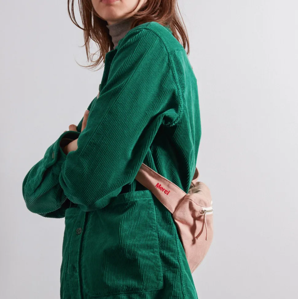 La Banane To Go, en 100% lin certifié OEKO-TEX est dotée d’une forme arrondie, d’une grande poche principale et d’une poche arrière zippée pour ranger vos essentiels. Elle est ornée d’une broderie « Merci » rouge sur la anse et d’une étiquette Merci To Go sur le devant. Fabriquée en Europe, elle reflète la vision de Merci en matière de mode respectueuse de l’environnement et de qualité des matériaux.