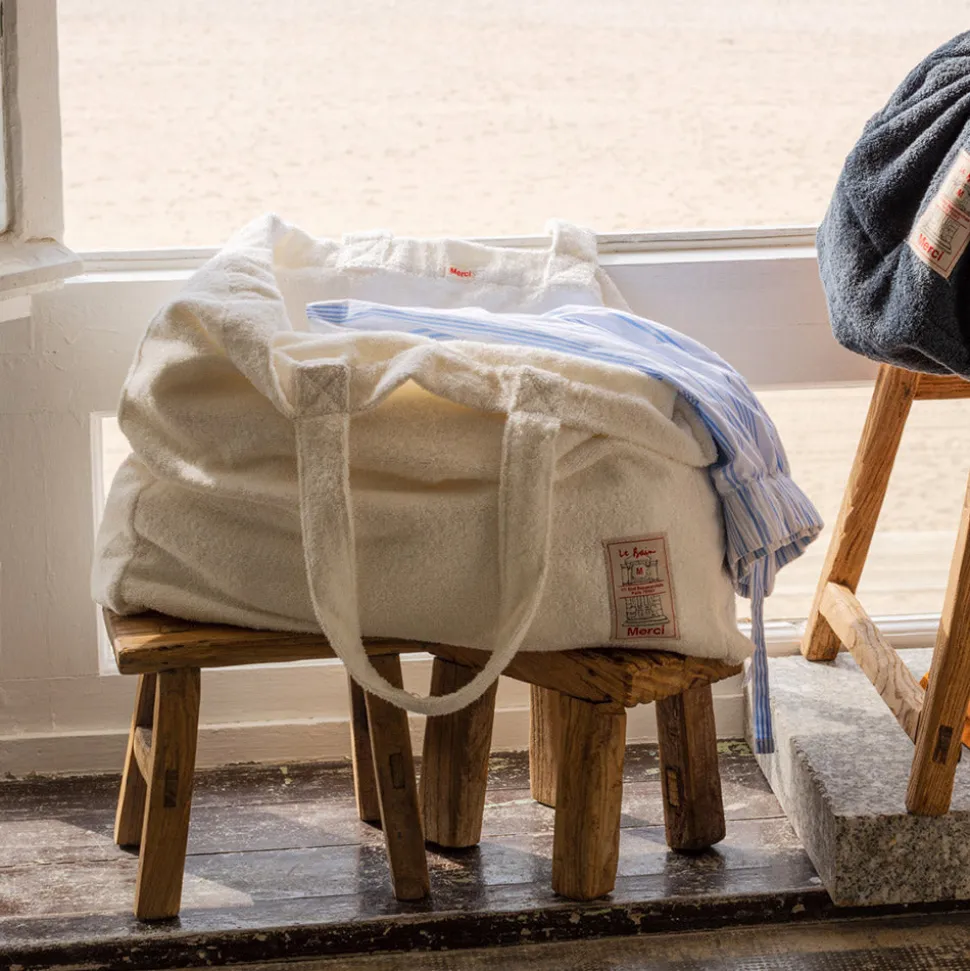 Merci revisite ses classiques du bain en une toute nouvelle matière : l’éponge. Faite en 100% coton, cette gamme de linge de bain est universelle, intemporelle, et durable.