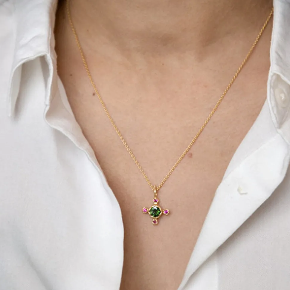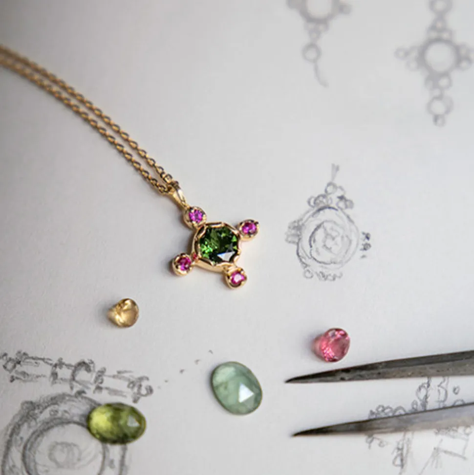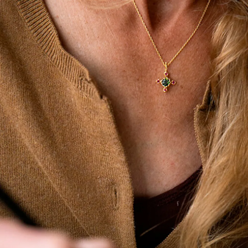Collier en vermeil (argent plaqué or 5 microns) et Tourmaline, Oxyde de zirconium