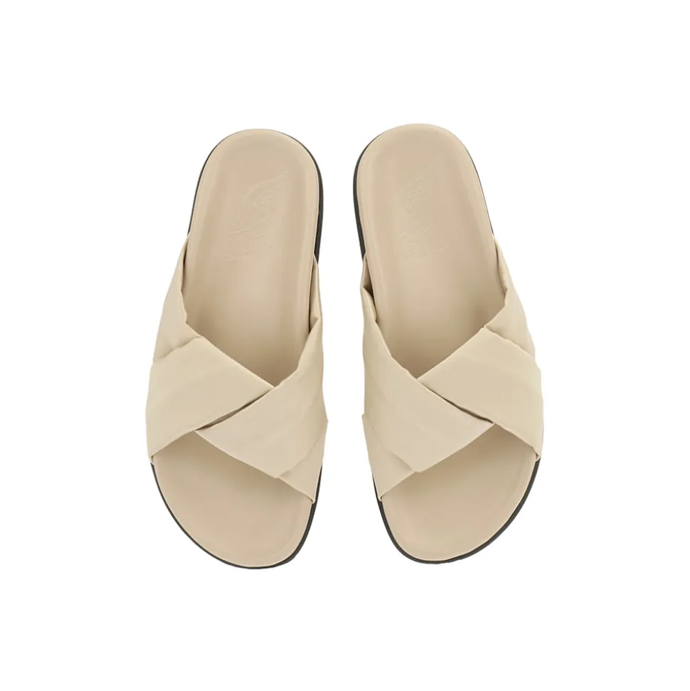 Selon un mythe de la Grèce antique, les dieux et les déesses faisaient fabriquer leurs sandales sur la belle île de Crète par un sandalier doué qui enrichissait chaque paire de pouvoirs magiques. Célèbre pour avoir fabriqué les sandales volantes d’Hermès, le fabricant de sandales les a également agrémentées de sa signature personnelle, une boucle « aile d’or ». Les sandales Ancien Greek Sandals sont fabriquées localement par des artisans qualifiés, selon des techniques traditionnelles qui existent depuis des siècles. Cette nouvelle marque de sandales se distingue par son esthétique à la fois brute et féminine. Le cuir tanné naturel, exempt de produits chimiques, vieillit magnifiquement avec le temps et l’usure.
