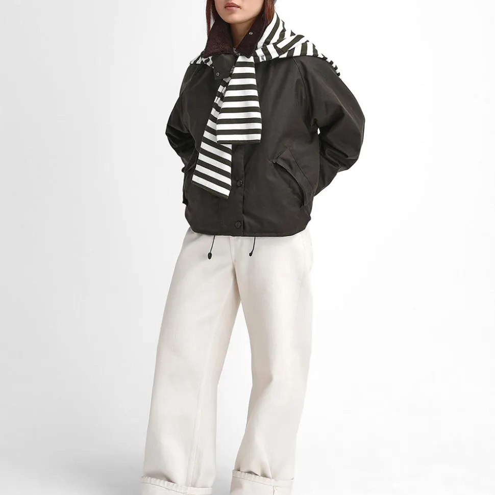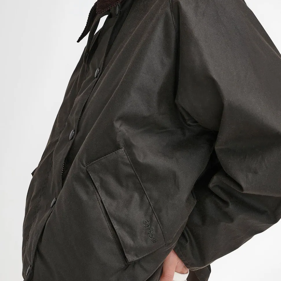 Inspirée par le vélo de montagne, cette veste simple et épurée reprend les principales caractéristiques de ses prédécesseurs, les vestes Bedale, Beaufort et International, tout en adoptant une nouvelle longueur plus courte. Fabriquée dans notre coton ciré classique 6oz, la veste Transport Waxed de Barbour pour femme adopte une silhouette surdimensionnée avec deux poches chauffe-mains et une jupe-tempête intérieure pour une protection optimale contre les éléments.