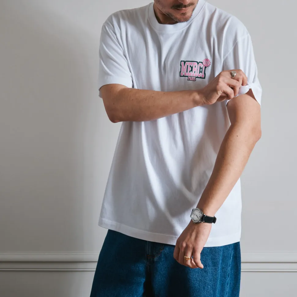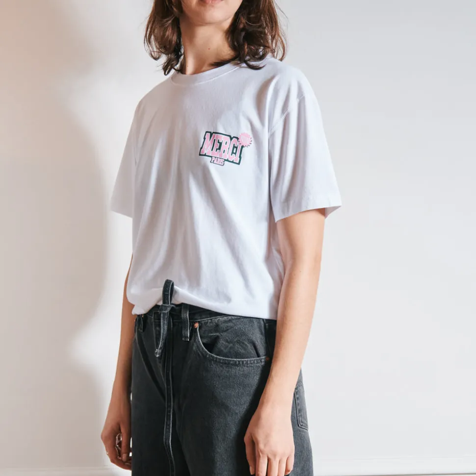 Femme BS01 L’esprit Merci|T-shirts-Merci – T-Shirt Non Merci College – Blanc