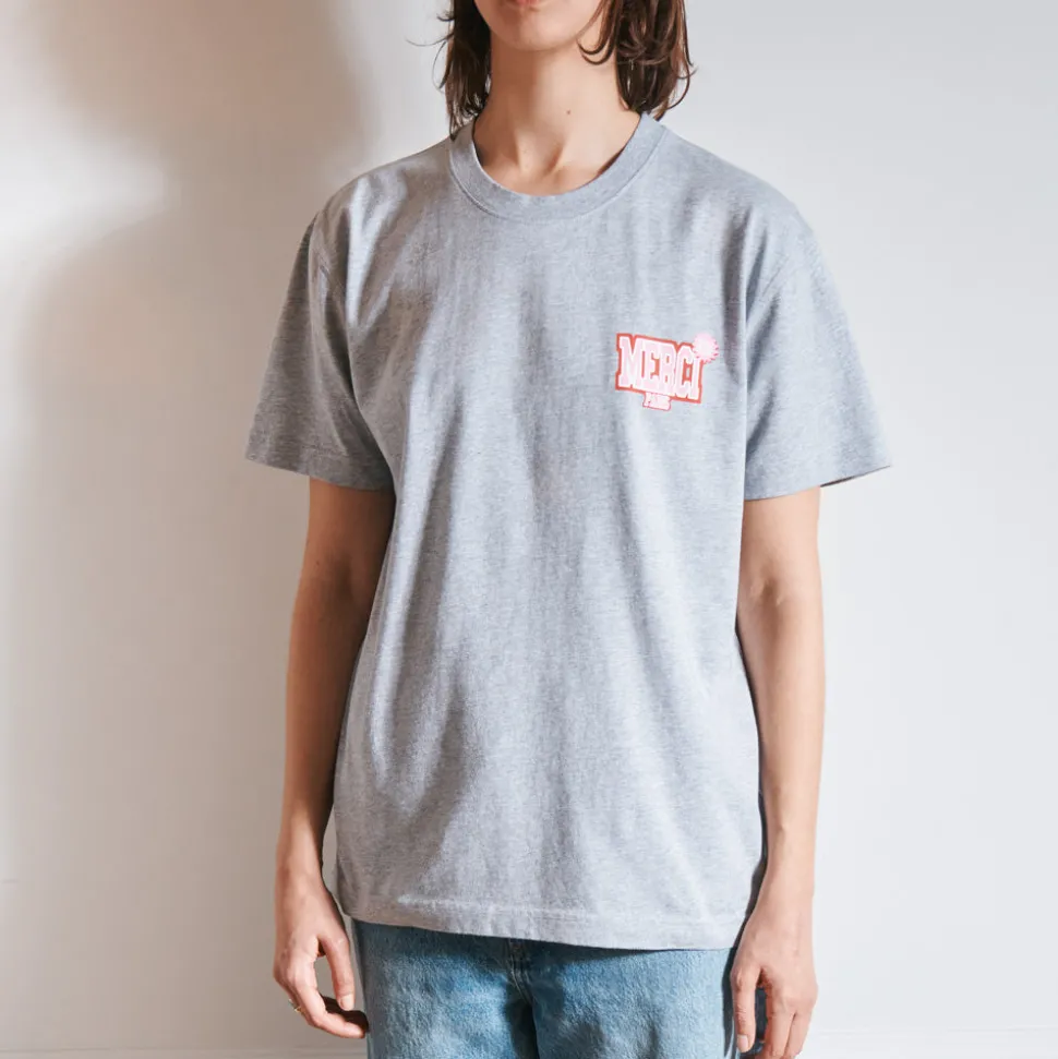 On retrouve des t-shirts, des sweats et des chaussettes, le tout habillé de références graphiques à tout-va. Les couleurs oscillent du vert bouteille au gris urbain, rehaussées par des couleurs percutantes comme le jaune ou le rouge. Une collection nostalgique et décalée, disponible dès maintenant chez Merci ou sur notre site internet.