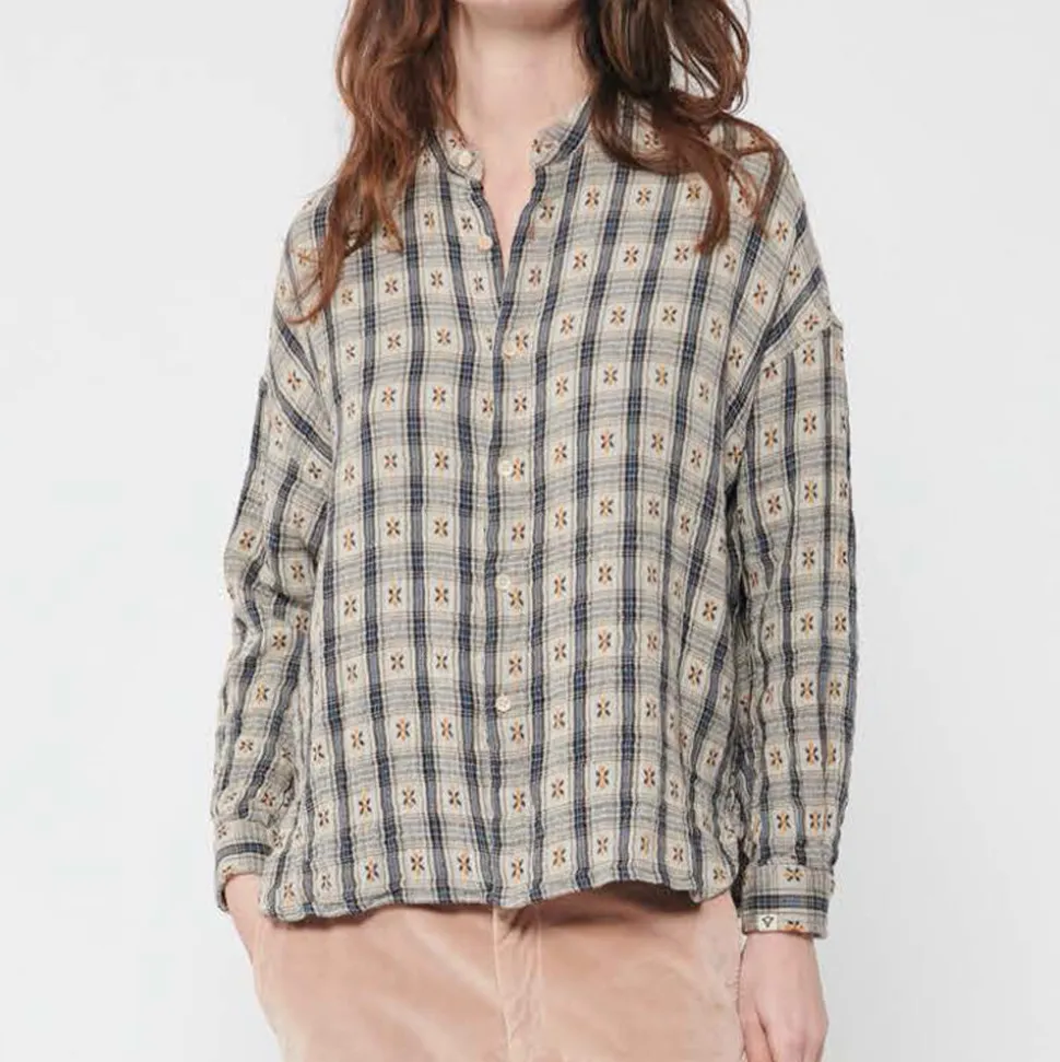Chemise à col coréen boutonnée jusqu’en bas