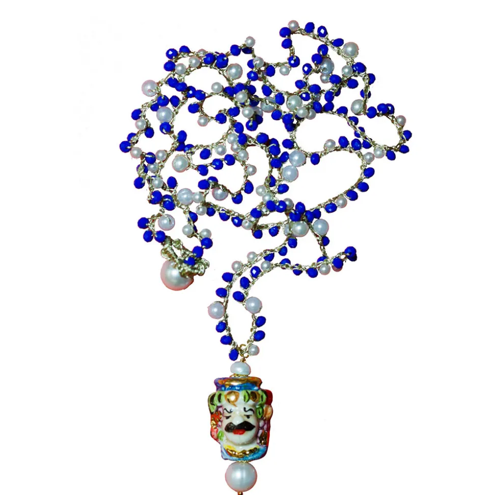 Zircon coloré et perles. « Testa di Moro » en céramique sicilienne de Caltagirone et perle naturelle.