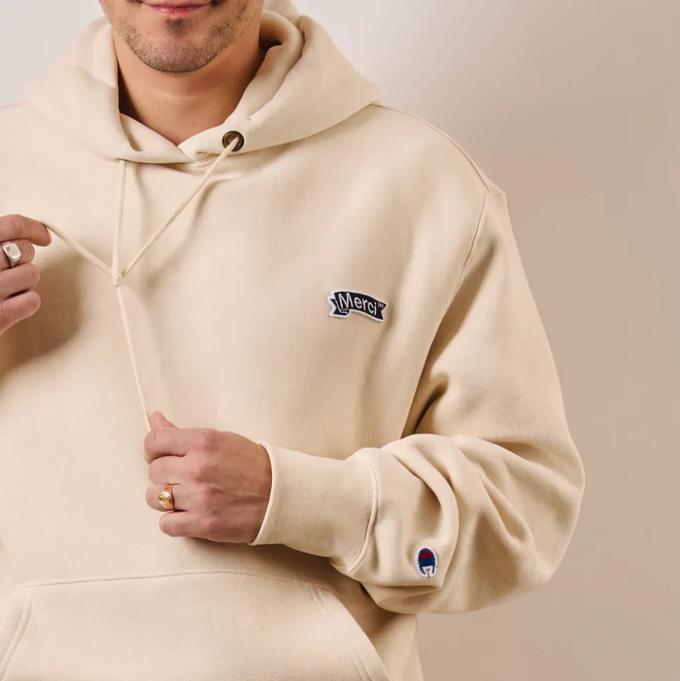 Les sweats iconiques Champion sont de retour pour cet hiver déclinés dans de nouvelles teintes. Les deux modèles avec et sans capuche, arborent fièrement l’étendard Merci, inspiré de la culture universitaire américaine. Les sweats Champion sont disponibles en ligne et en magasin.