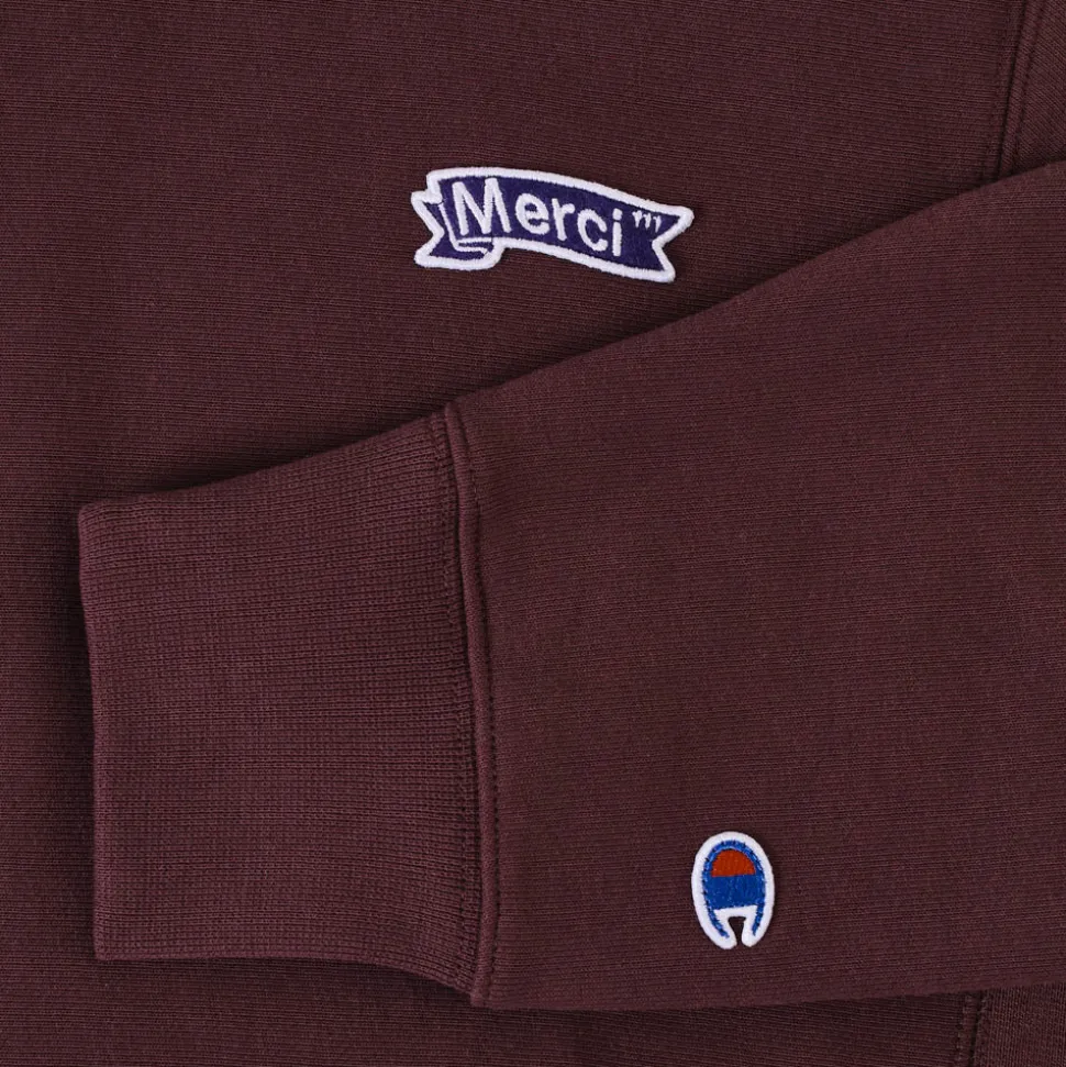 Les sweats iconiques Champion sont de retour pour cet hiver déclinés dans de nouvelles teintes. Les deux modèles avec et sans capuche, arborent fièrement l’étendard Merci, inspiré de la culture universitaire américaine. Les sweats Champion sont disponibles en ligne et en magasin.