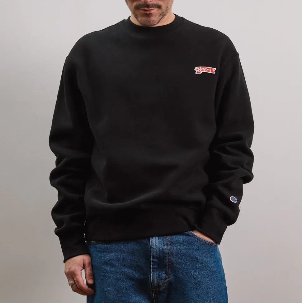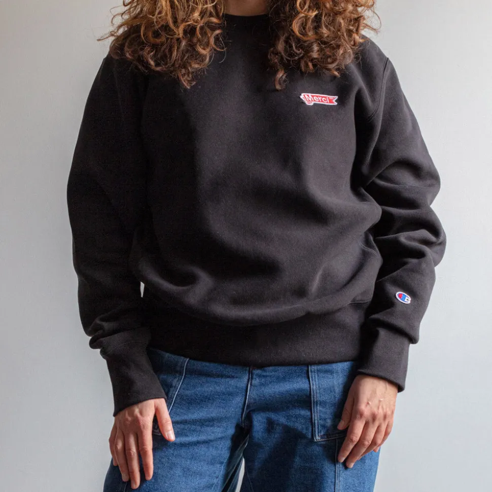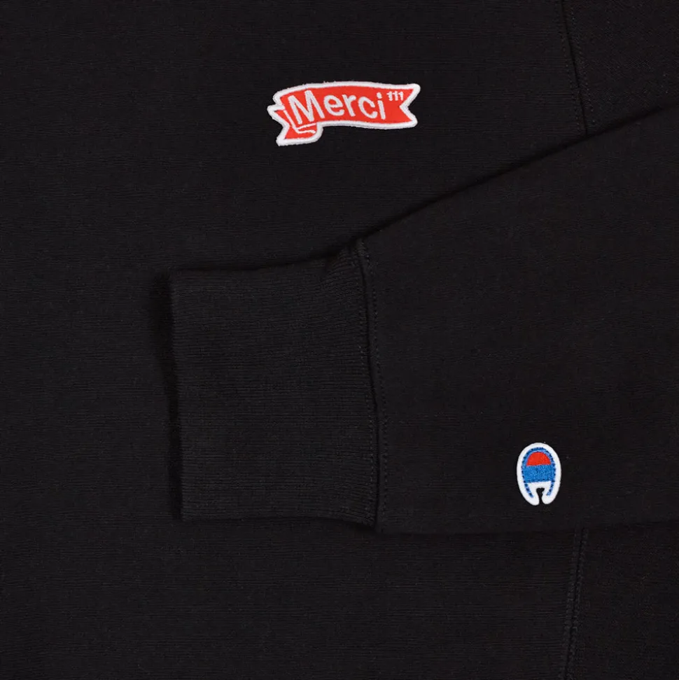 Créé en 1938, breveté en 1952, avec plus de 80 ans de présence dans l’univers sportif, le sweat Champion résiste à l’épreuve du temps.Unis par les mêmes valeurs, Merci et Champion s’allient le temps d’une collection capsule en édition limitée. Les sweats iconiques se parent de l’étendard Merci, inspiré de la culture universitaire américaine et se déclinent avec et sans capuche et dans trois coloris : bleu, gris et noir.