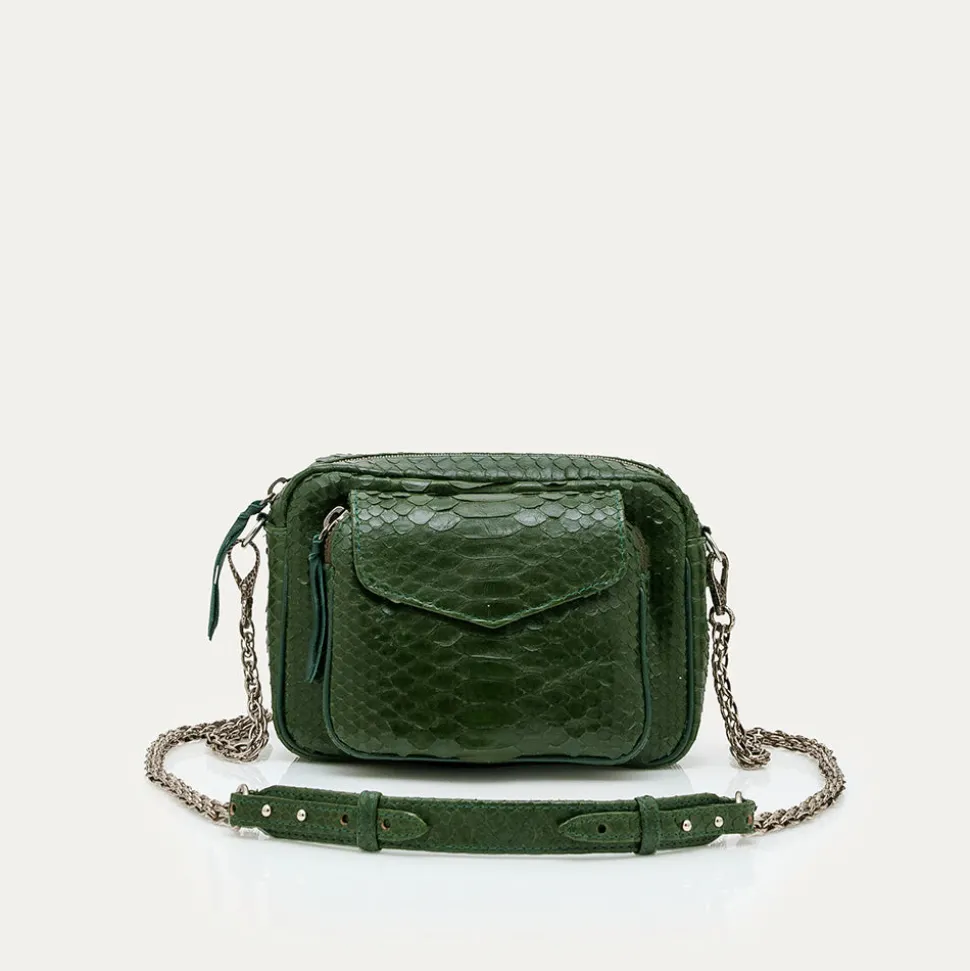 Ce sac porté croisé ou épaule est organisé en un compartiment avec une poche à l’avant. Notre Charly en python est muni d’une chaîne artisanale et de nombreux espaces de rangements qui vous facilitera la vie. Grâce à ses couleurs uniques, sa forme intemporelle, et son cuir souple notre Charly trouvera immédiatement sa place dans votre dressing !