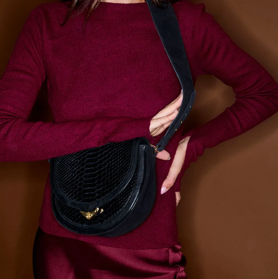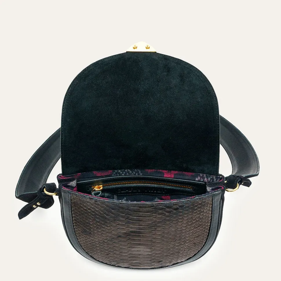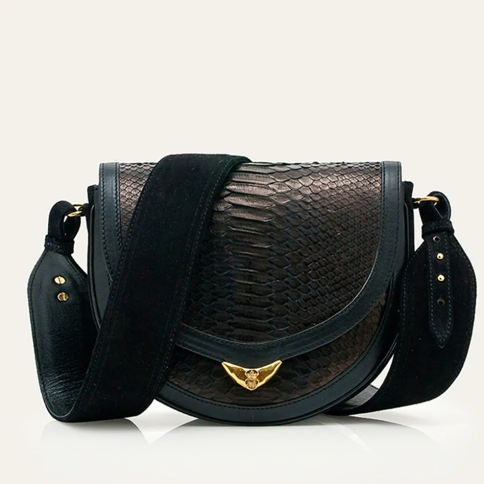 Notre nouveau sac besace Victoria est composé de python et réhaussé de lézard. Victoria se ferme à l’aide d’un fermoir à embout métallique orné d’un petit scarabée. Organisé en un seul compartiment avec une poche interne zippée, Victoria pourra transporter tous vos indispensables. Enfin, grâce à sa bandoulières modulable, vous pourrez le porter épaule ou croisé selon vos envies et sorties !