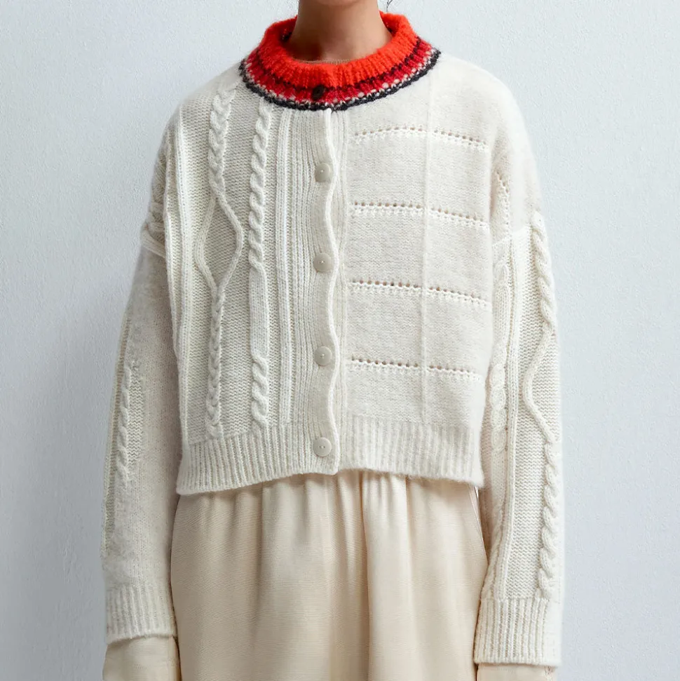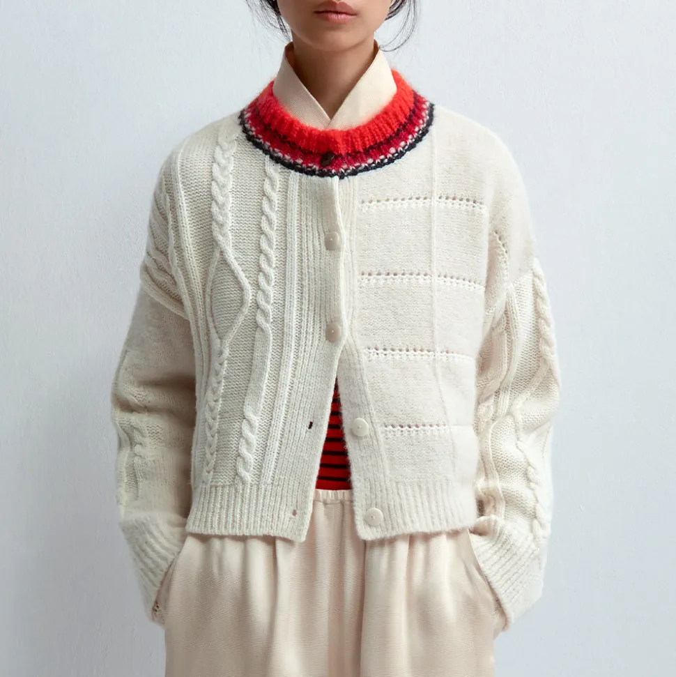 Ce cardigan est tricoté dans un mélange d’alpaga doux, chaud et tactile. Il est agrémenté de différentes textures, d’un col rond et de boutons sur le devant.
