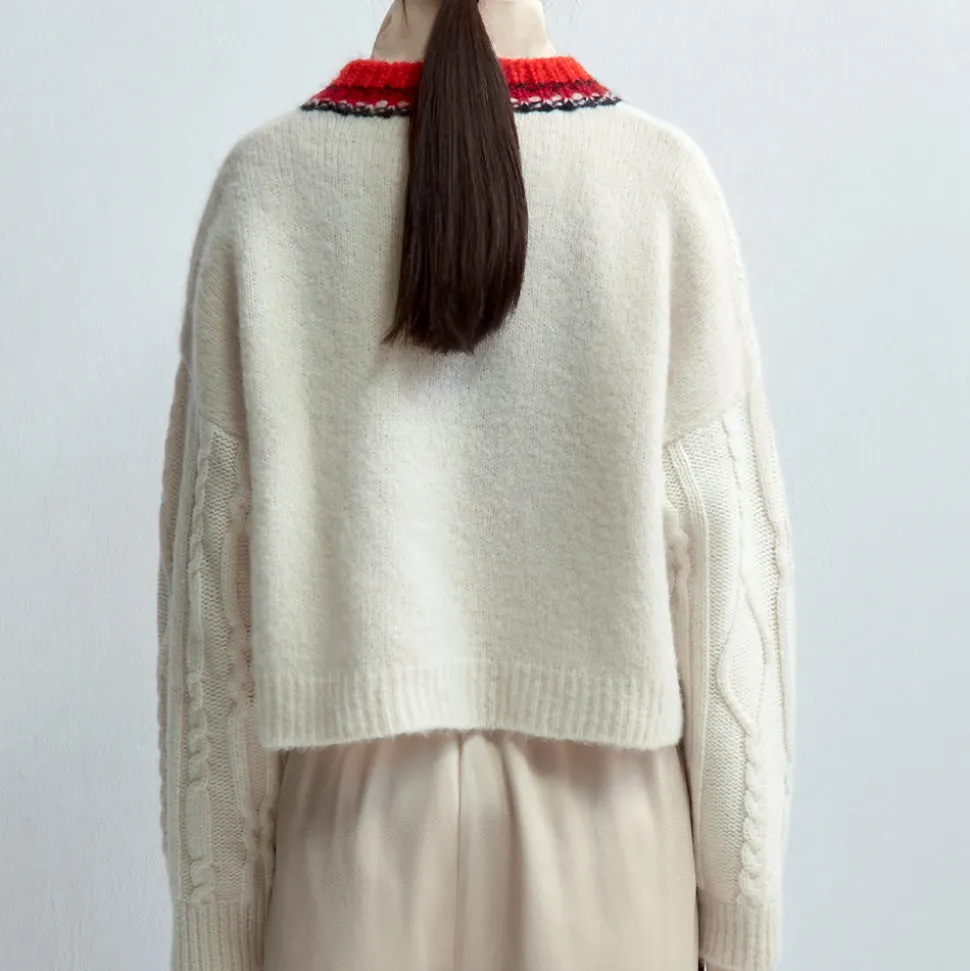 Le col d’un rouge vibrant rend cette pièce plus spéciale pour vos tenues quotidiennes et sera un ajout rafraîchissant à votre palette d’hiver.