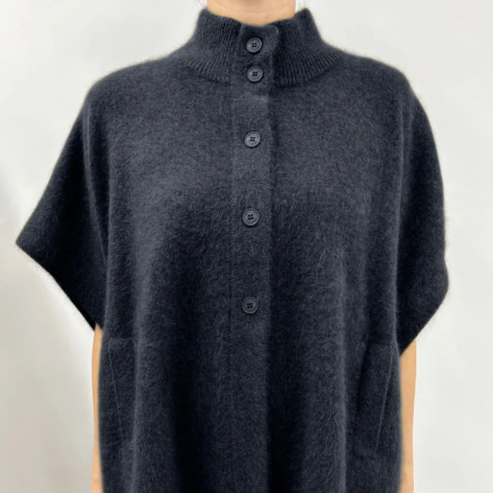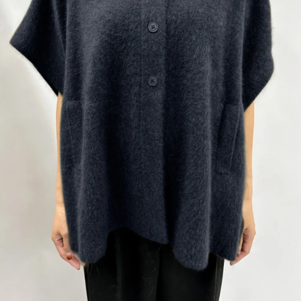 Un poncho très pratique pour les voyages courts. La matière est en poils de raton laveur brossés, très légers et chauds.