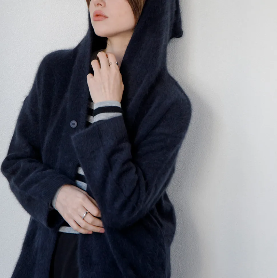 Un gilet à capuche C.T.plage classique. C’est un matériau très chaud fabriqué en brossant séparément la fourrure de raton laveur et de renard et en le tordant avec du nylon.