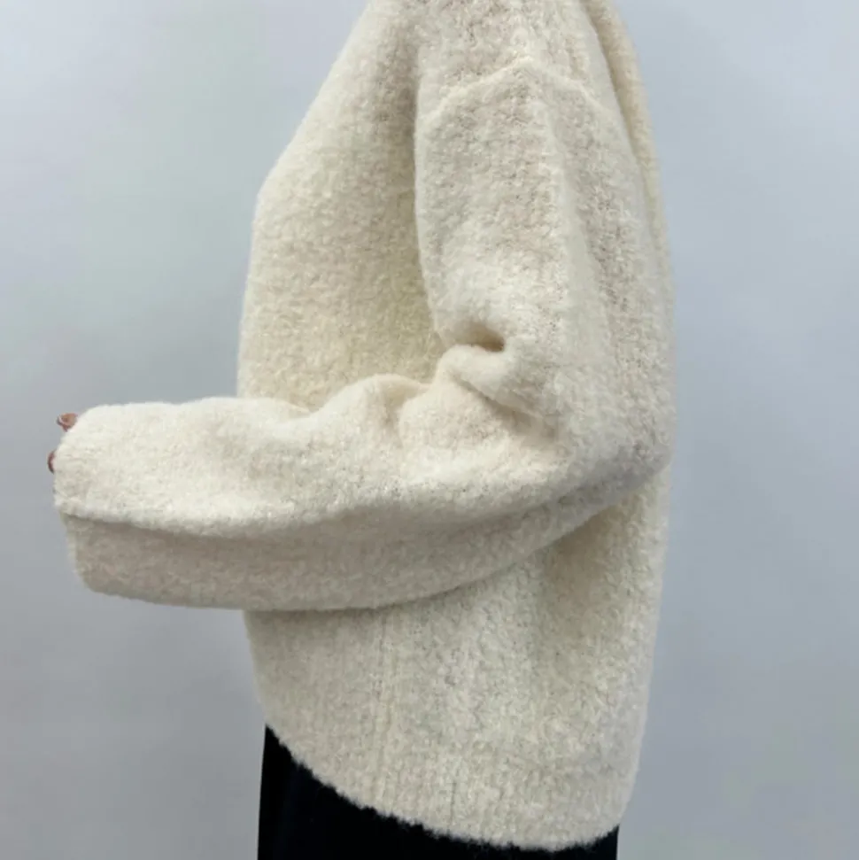 Ce pull a une silhouette arrondie avec des manches. La matière est fabriquée au Pérou.