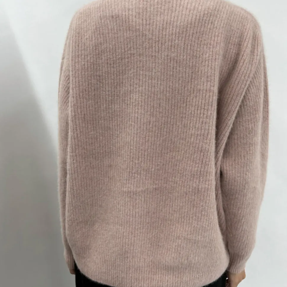 La maille striée crée une forme tridimensionnelle. Ce pull est agréable à porter et peut être coordonné avec une variété de bas.