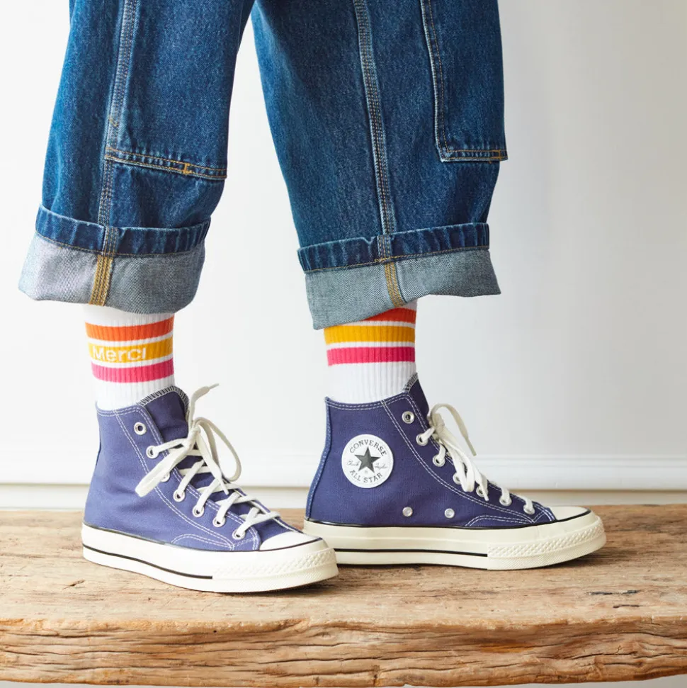 Chaussettes Merci en cotonDétail rayures coloréesLogo Merci sur un côtéTrès confortables