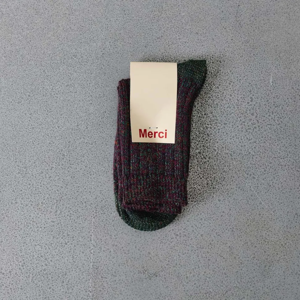 Chaussettes Merci pour femmePailletées, agrémentées d’un fil brillantDétail côteléTrès confortablesTaille uniqueE…