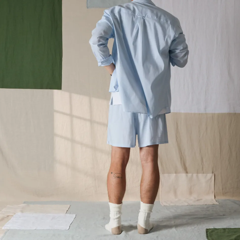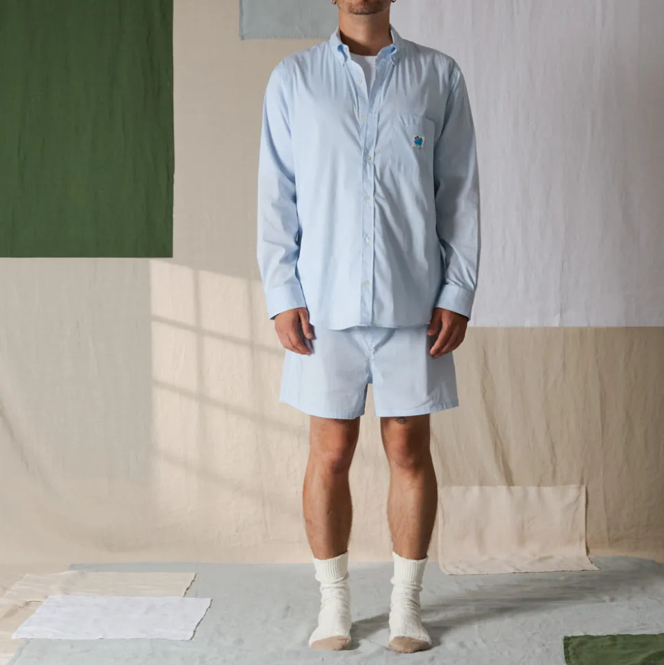 Merci dévoile son nouvel ensemble. Toujours accompagné de son étiquette Trèfle-Coeur, il offre un look décontracté alliant simplicité et confort. Composé d’une chemise à manche longue et d’un short boxer ample, cet ensemble en coton est décliné en six coloris à motif uni, rayures, ou carreaux.